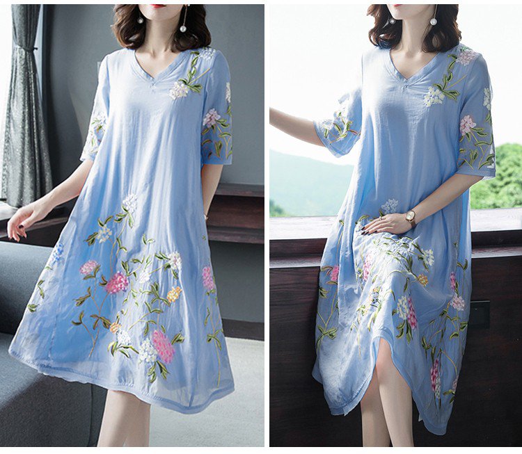 ชุดเดรสปักลายทรงหลวมไซส์ใหญ่