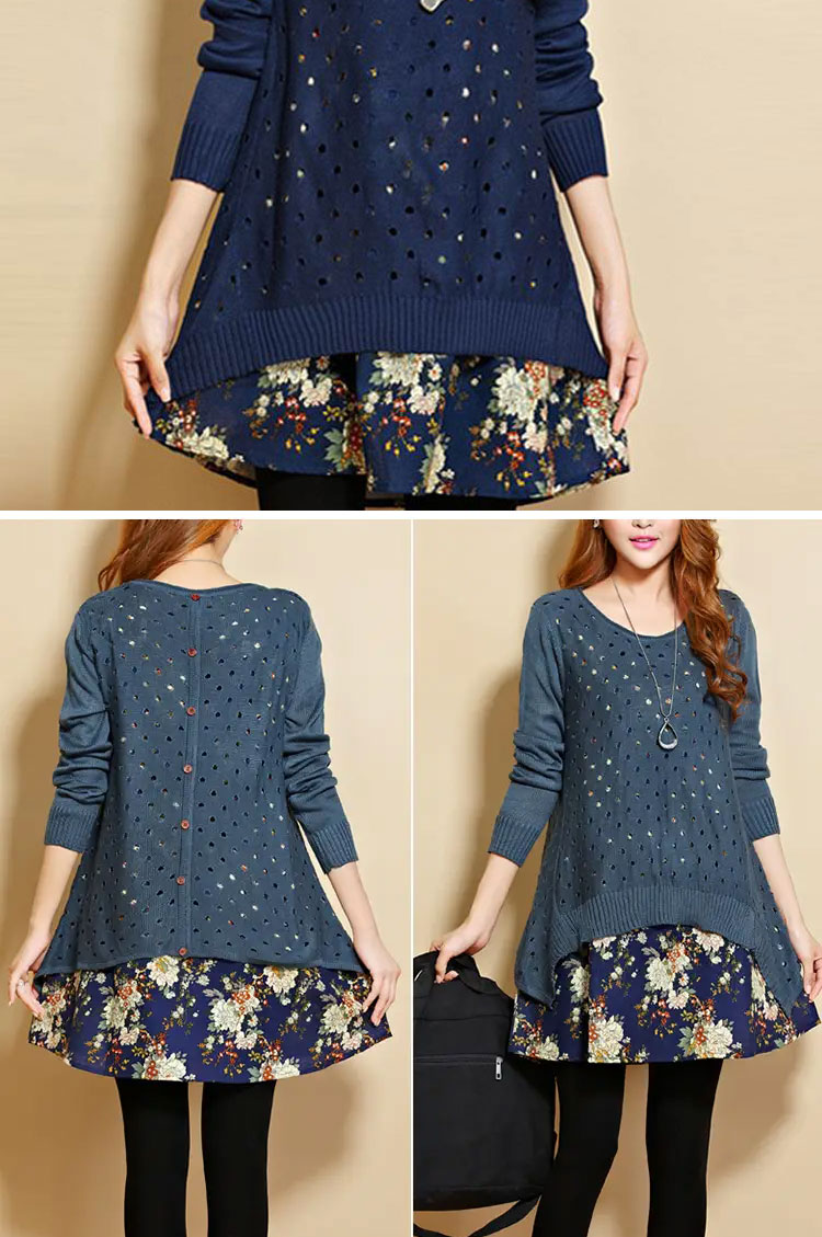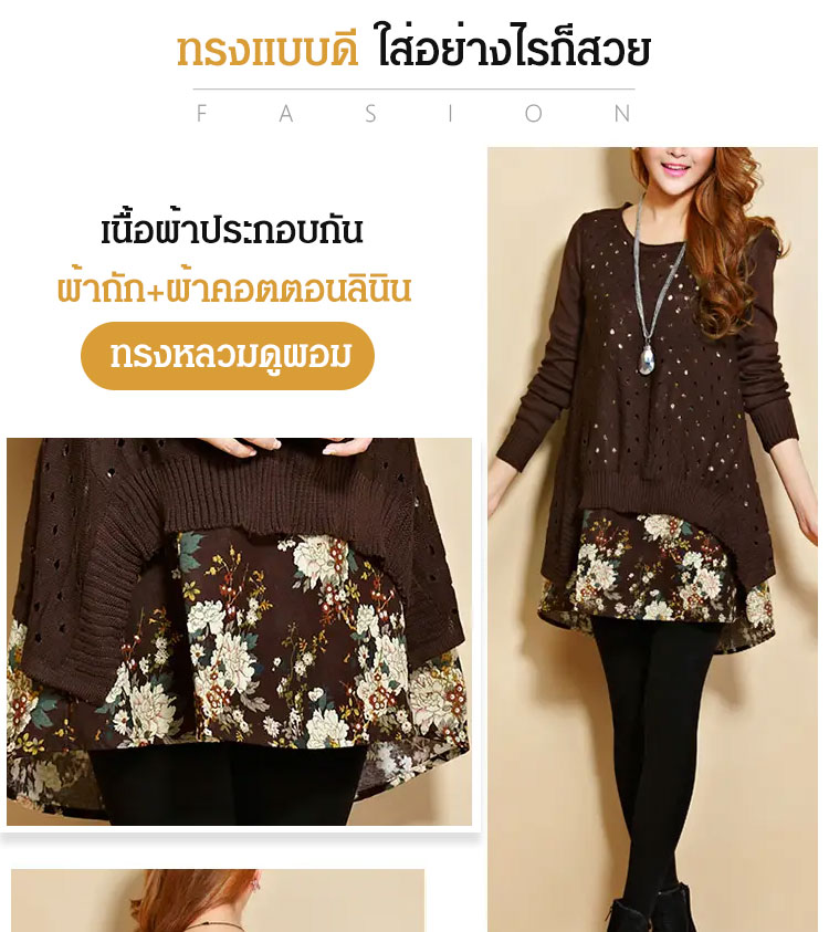 ชุดเดรสผ้าถักคอตตอนลินิน